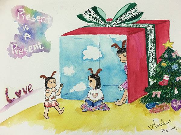 是的,現在就是禮物。此時此刻能夠呼吸,感覺空氣進入胸腹,只要活著就能感受神如此精巧奇妙的創造;兩個人不同家庭背景的人的相遇相愛,願意進入婚姻,能夠也願意繼續一同養育子女,也是許多點點滴滴的奇蹟;孩子們的歡聲笑語,哭泣爭吵,是生活裡不同的顏色,雖然有的顏色我們不一定喜歡,但這是幼小群居動物學習成長的一部分,開始以更開放的心看待那些大人覺得無謂,但孩子們卻認為很重要的小事。